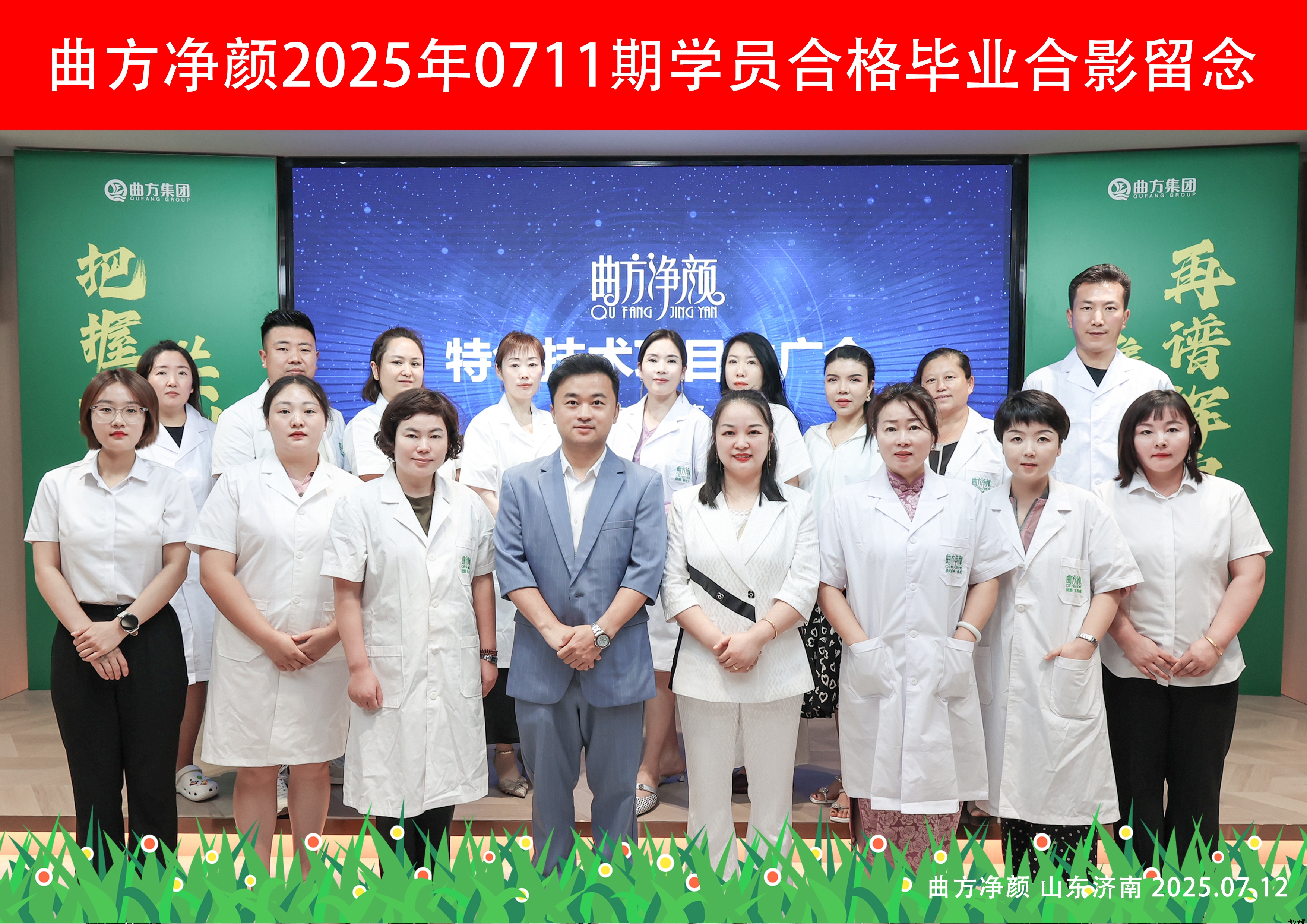 2025-07-14 14:25:27 7月11日,曲方净颜财富项目推介会山东站盛大开场,来自各地的学员齐聚一趟,于曲方净颜济南天桥分公司共赴美业技术盛宴。