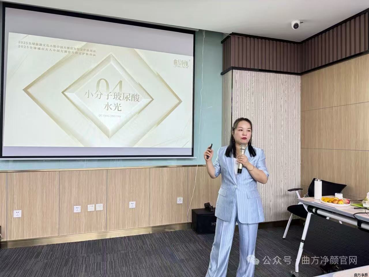 活动伊始,曲方净颜创始人曲总走上讲台,向在场嘉宾致以热烈的欢迎。随后,曲总详细介绍了公司未来的发展规划,他重点强调了技术升级的重要性,称这是品牌在美业市场立足并持续发展的核心动力。同时,曲总提到会进一步完善赋能体系,从技术培训、运营指导等多个方面为合作伙伴提供有力支持,助力大家在美业道路上稳步前行。曲总的分享让在场嘉宾对曲方净颜的未来发展充满了信心。