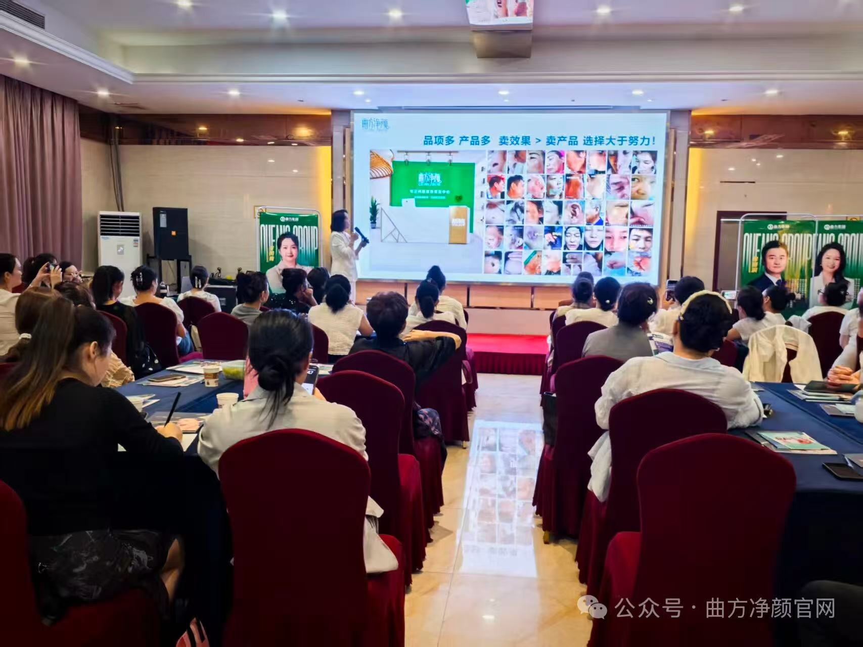 最后,曲方净颜商学院导师接棒,聚焦 “技术转化业绩” 展开分享。结合门店遇到的实际问题给出针对性方法,平衡短期客流与长期收益,让在场者直呼 “实用落地”。老师还为大家介绍了美业中的新蓝海——“曲方新美业合伙人赋能平台”的机制与长远规划,以全新的模式展开美业的新篇章,激起了在场的一片掌声。