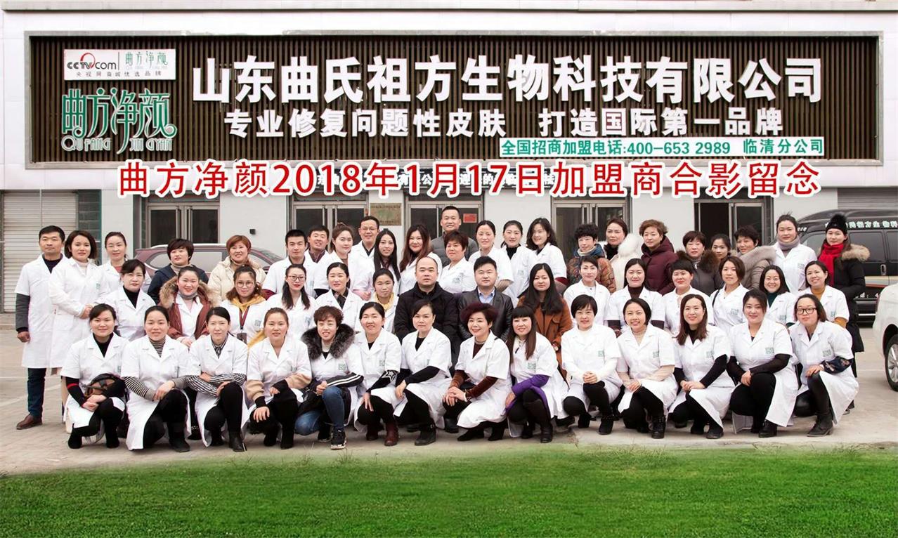 热烈祝贺曲方净颜山东总部2018年1月17日加盟商合影留念